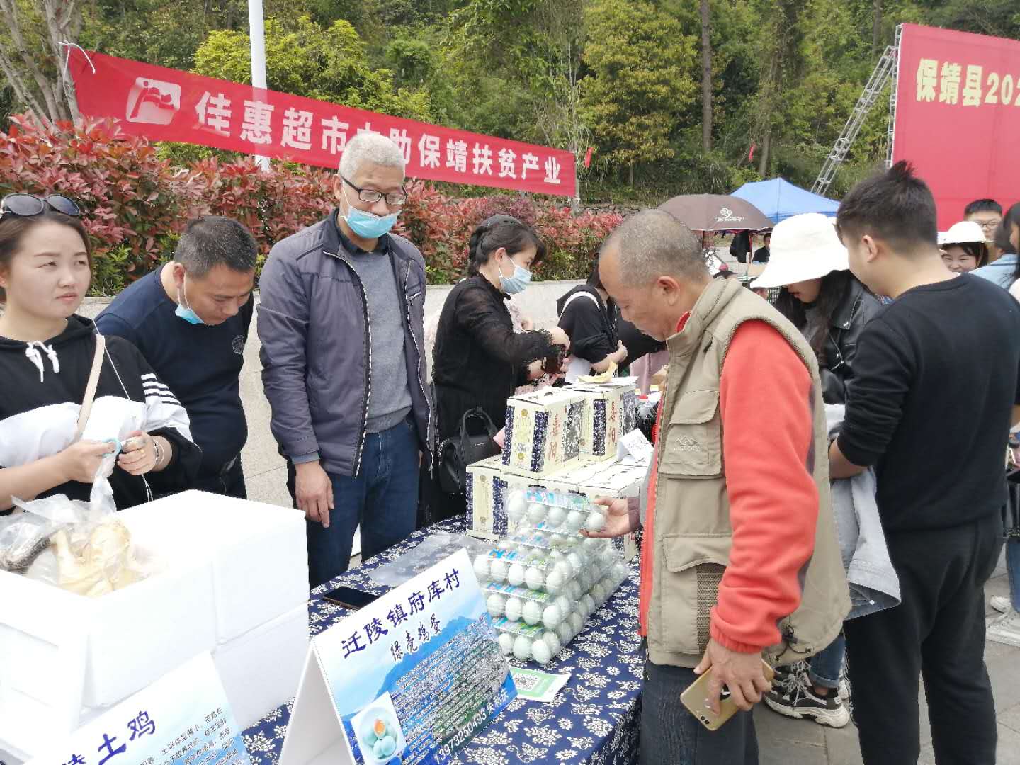 朱利慶帶著村特色養殖府庫綠殼土雞蛋亮相當地市場