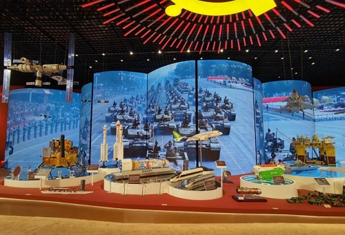 會前,與會人員共同參觀了“中央企業永遠跟黨走——全國國有企業黨的建設工作會議召開五年來國資委黨委中央企業黨的建設工作展”,中國兵器工業集團有限公司7幅照片、3部視頻(《信物百年—馬尾手榴彈》、《永恒的守護》、兵器工業集團研制生產的武器裝備視頻)、3本圖書(《兵工記憶》《兵工地圖》《祝榆生—誓將一生獻給黨》)、1件大型實物(綜合防空反無系統演示平臺)及主戰坦克、輪式步兵戰車、遠程火箭炮、自行火炮4類模型亮相工作展。