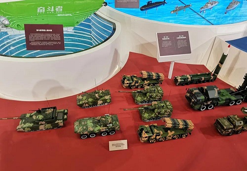 ▲我國自主研制的主戰坦克、輪式步兵戰車和遠程火箭炮等陸軍主戰裝備